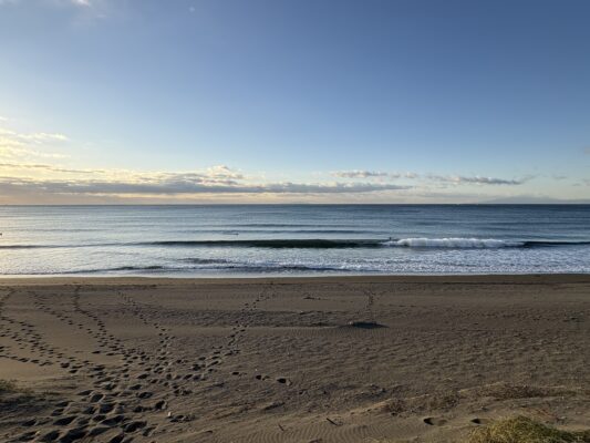 おはようございます。 今日の天気は晴れの予報。西高東低の気圧配置に寄り寒気が入り、冷たい北風が吹く冷えた朝となっています。海は昨日の南西風で荒れた影響で上がった波が今朝は整って、筋張ったモモ前後のたまのセットで腰近くの波 [...] [...]