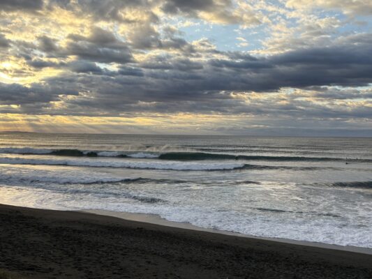 おはようございます。 今日の天気は曇り時々晴れの予報。今朝は雲の多い中、少しだけ日が差していて冷たい北風がやや強めに吹き寒い朝となっています。そして海は、オフショアがやや強めに吹いていますが、面がクリーンな頭前後の幾重に [...] [...]