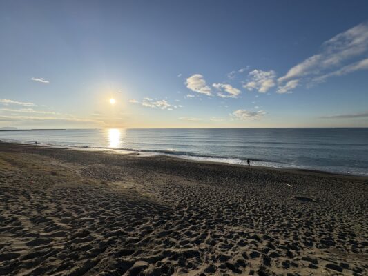 おはようございます。 今日の天気は晴れの予報。今朝は放射冷却に寄り冷えた手が悴む朝ですが、波チェック中の朝日の日差しは暖かく感じています。海は、筋張った小さなウネリが入る程度で、インサイドのショアブレイクとサーフできない [...] [...]