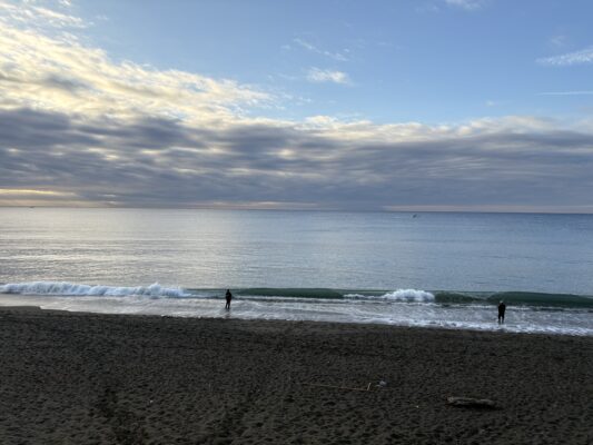 おはようございます。 今日の天気は晴れのち曇りの予報。今朝は水平線の雲の塊から陽が出て来て、やや冷たい空気感の肌寒い朝となっています。海は、昨日のオンショアで上がったウネリを期待しましたが、かなり小さくスネから膝近くの波 [...] [...]
