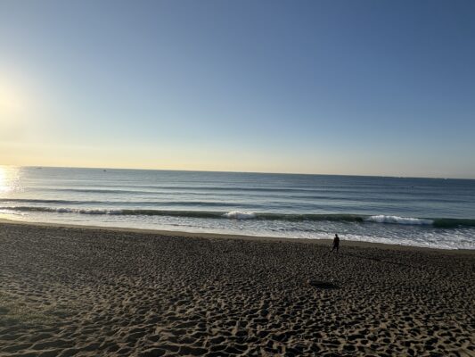 おはようございます。 今日の天気は晴れの予報。今朝は空気が澄んで雲ひとつ無いオレンジ色の水平線にブルースカイ広がる気持ちの良い天気の朝です。海は筋張ったウネリが入り、潮目が今ひとつなのでインサイド気味のブレイクですが、時 [...] [...]
