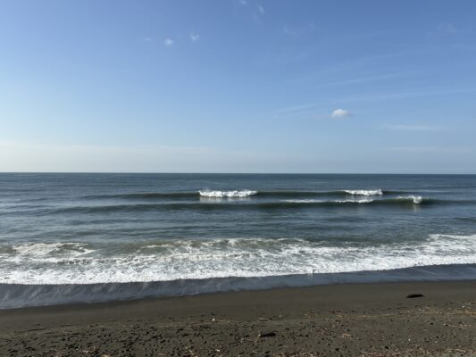 おはようございます。 今日の天気は曇り時々晴れの予報。今朝は雲多く薄陽が指す天気で、やや冷たい北東風が吹き肌寒い朝です。海は筋張ったスネから膝近くのウネリがたまに入る程度で、朝は潮も多くインサイドブレイク。これから引いて [...] [...]